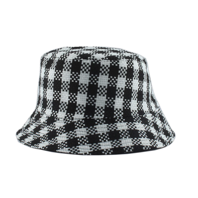 2020 New Two Side Reversible Black White Plaid Bucket Hats Fishing Caps Women Men bob hat summer fashion sun hat