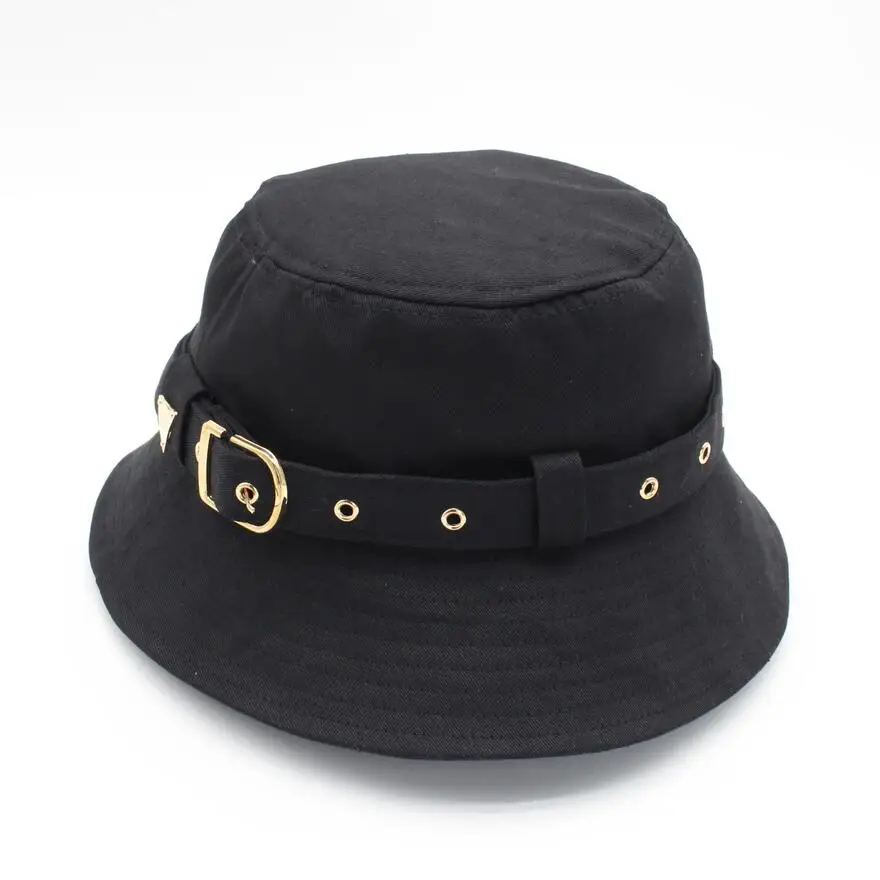 .Gallery of Girls Gold Buckle Belt White Bucket Hat 2020 New Cool Sun Protective Hat Women Black Camel Cotton Twill Fisherman Hat