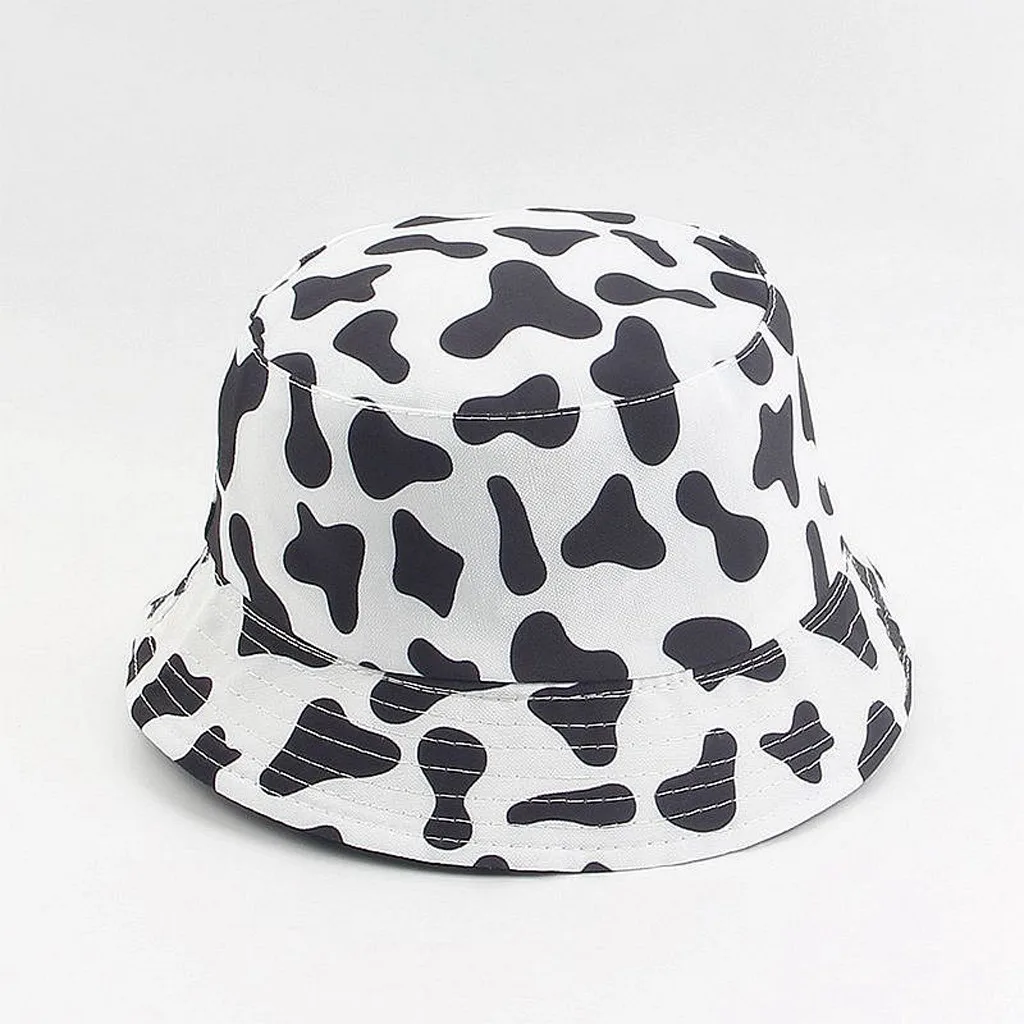 Special Offer for Bucket Hat Women Summer Black White Cow Pattern Outdoor Activities Travel Double-sided Fisherman Cap Sun Basin Bucket Hats #617